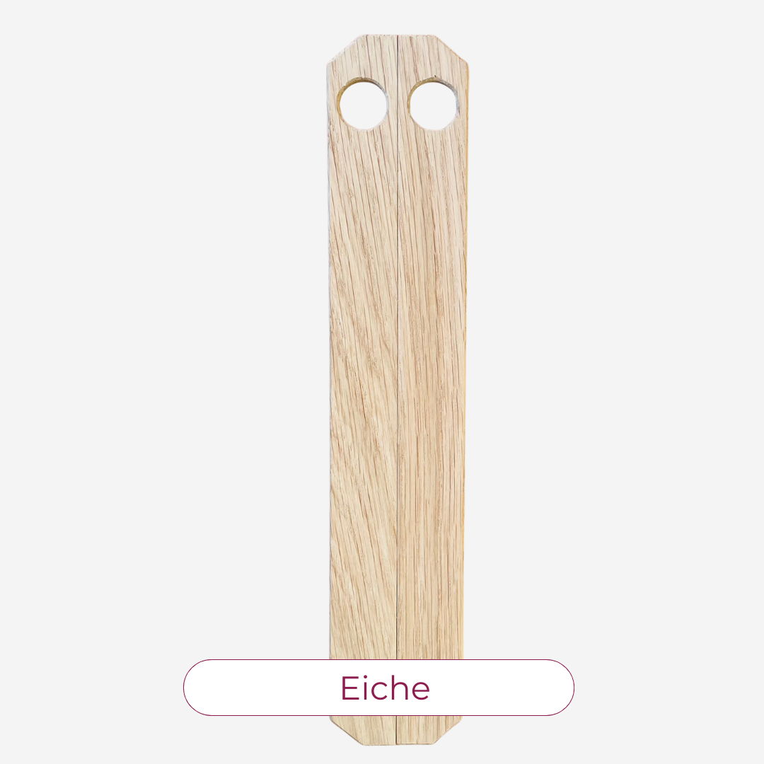 Vollholz Handgriff aus Eiche, Kirsche, Mooreiche oder Eschekern, Holzgriff aus Altholz hergestellt aus Deutschen Wäldern. Der Handgriff wird aus unbehandelten Holzresten der familiengeführten Tischlerei hergestellt.