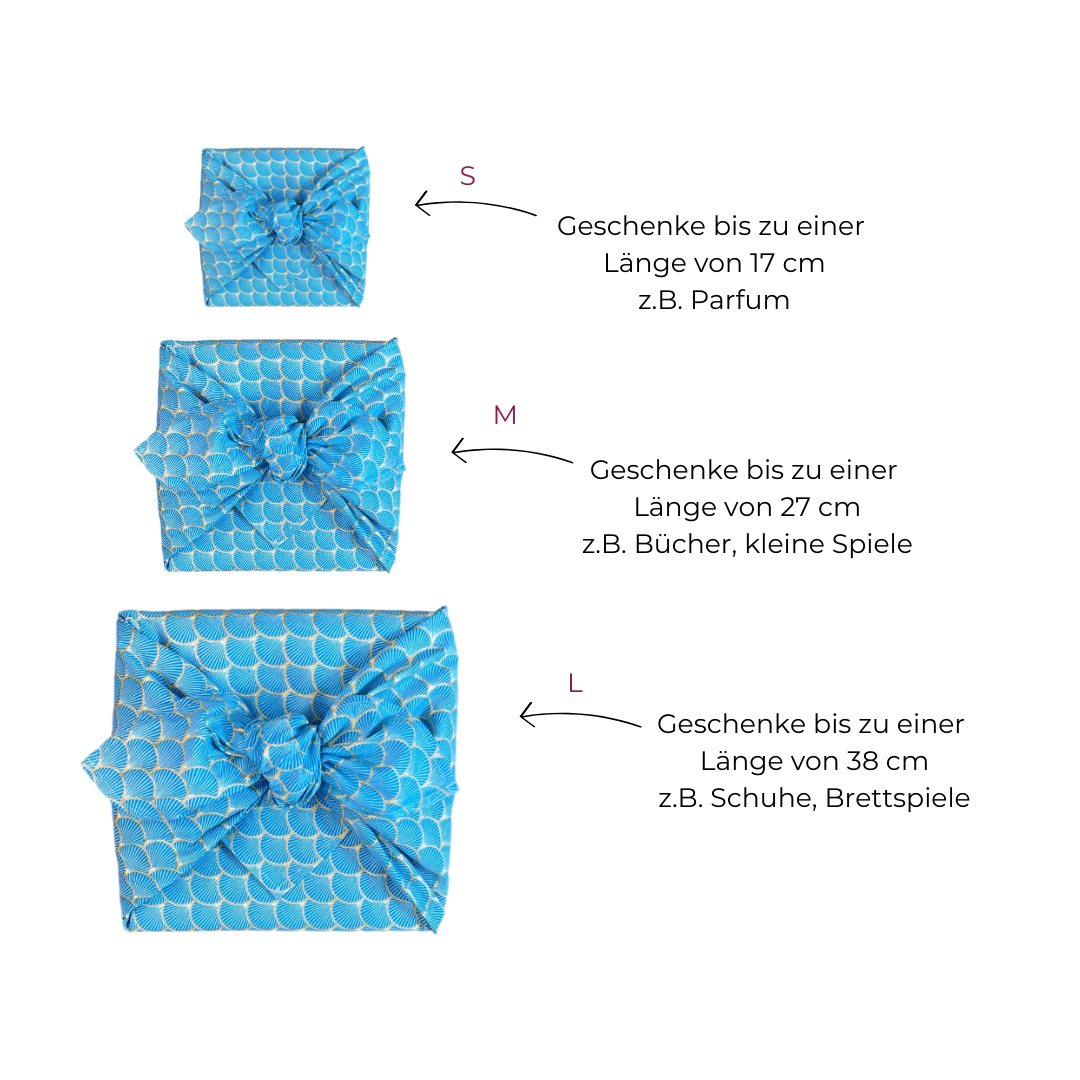 Mit den unterschiedlichen Furoshiki Faltanleitungen verpackst du dein Geschenk in weniger als einer Minute, individuell und kinderleicht.