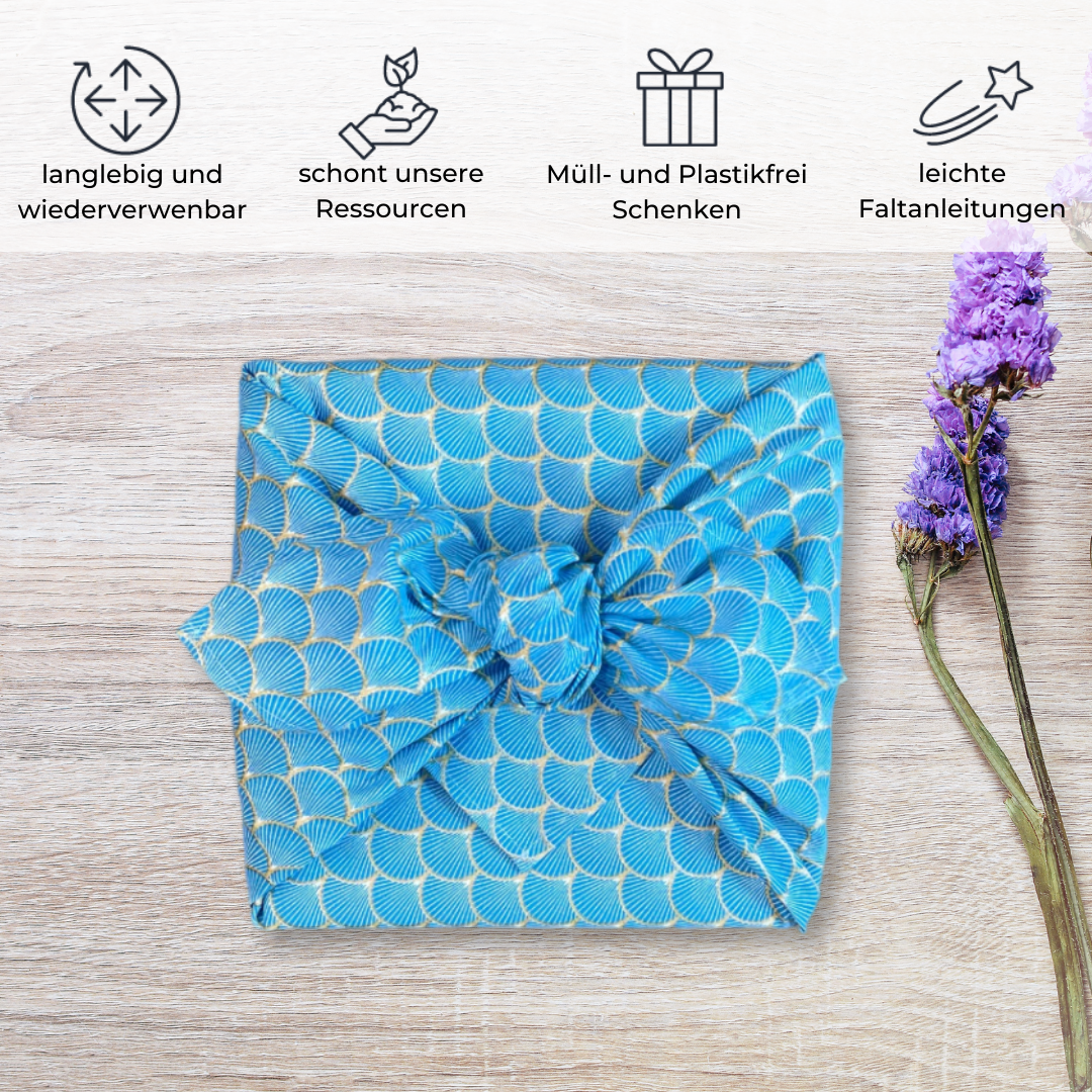 Weniger Müll, mehr Liebe zur Natur! Mit unserem Furoshiki-Tuch kannst du nicht nur schöne Geschenke machen, sondern auch einen Beitrag zum Umweltschutz leisten. Sag "Auf Wiedersehen" zu Einwegverpackungen und "Hallo" zu einer nachhaltigen Zukunft.