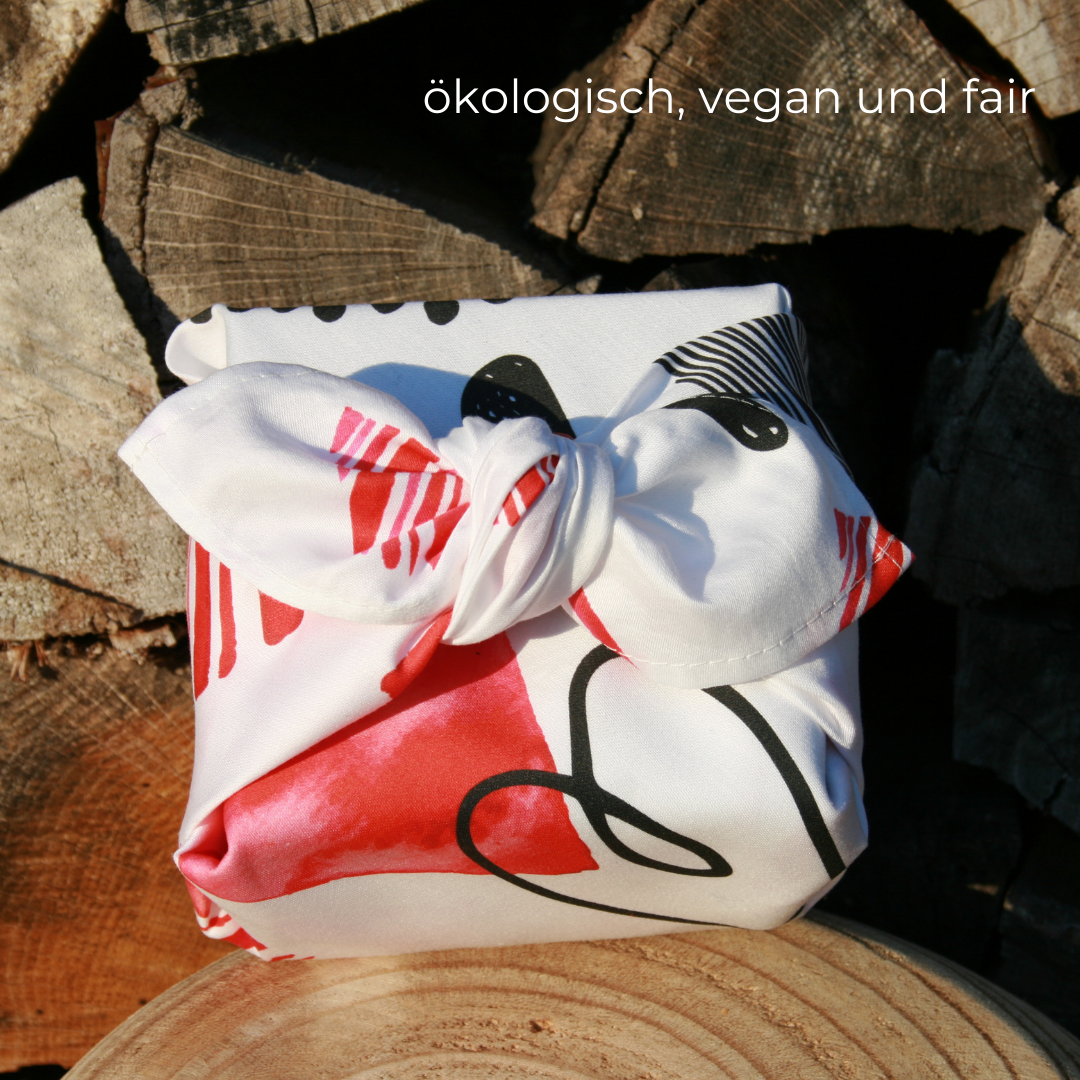 Mit den unterschiedlichen Furoshiki Faltanleitungen verpackst du dein Geschenk in weniger als einer Minute, individuell und kinderleicht.