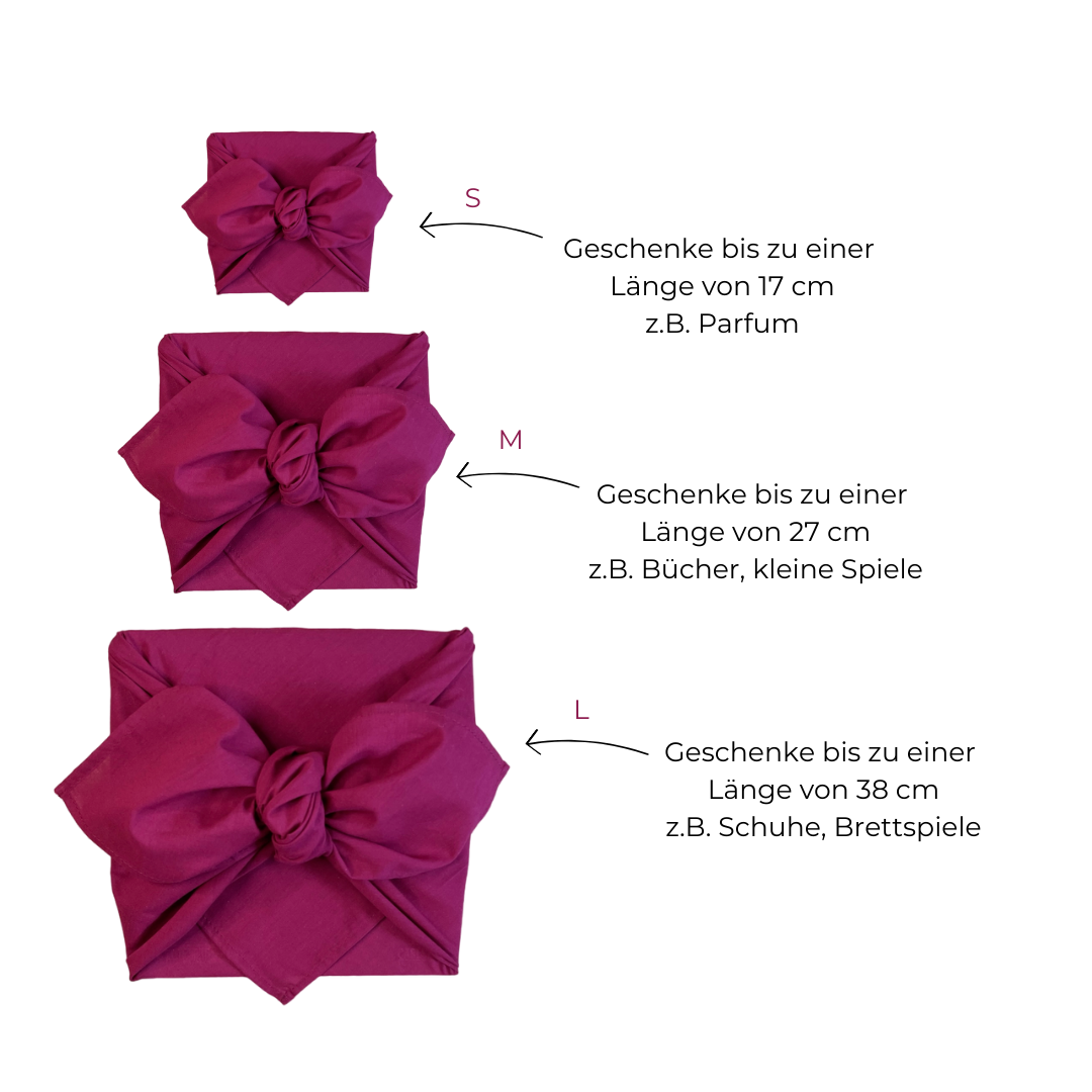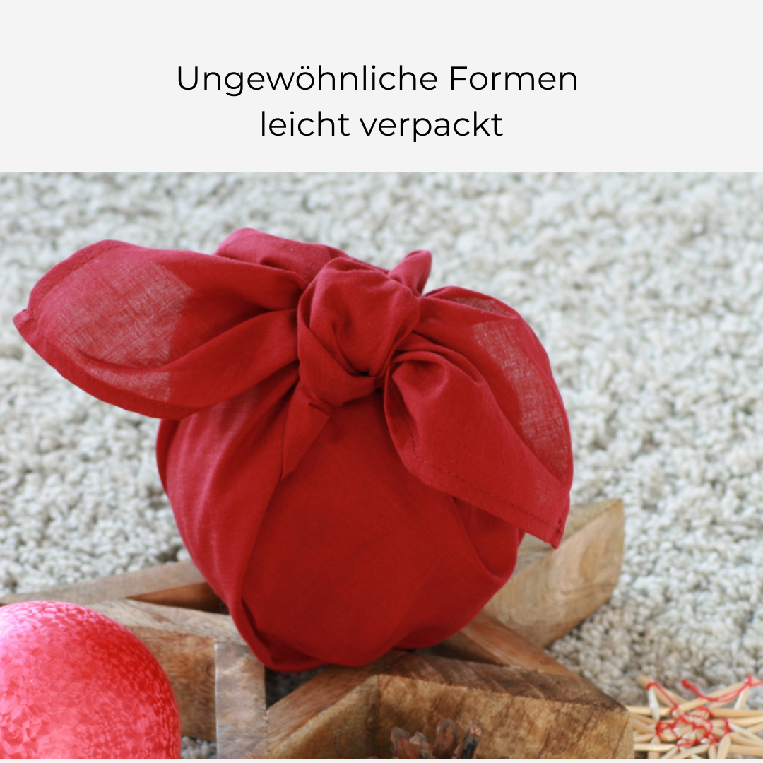 Mit den unterschiedlichen Furoshiki Faltanleitungen verpackst du dein Geschenk in weniger als einer Minute, individuell und kinderleicht.