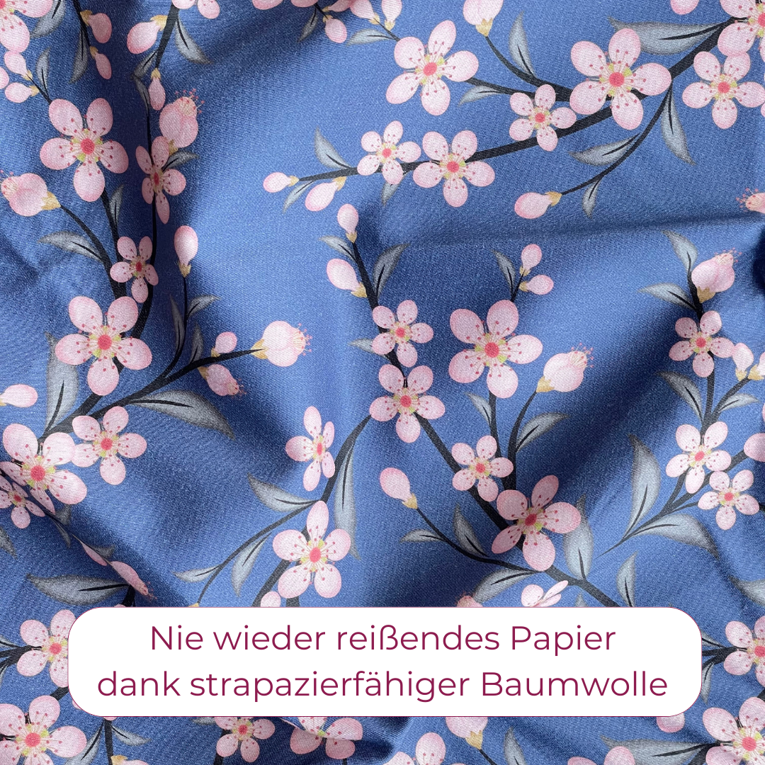 Im Set enthalten ist das Muster Bloomika - Kirschblüten auf dunkelblauen Hintergrund. Größen je nach Set-Auswahl